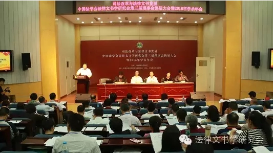 常务副校长王新清代表承办单位致辞,中国法学会法律文书学研究会会长、副会长、常务理事、理事等120余人参加了本次换届大会。