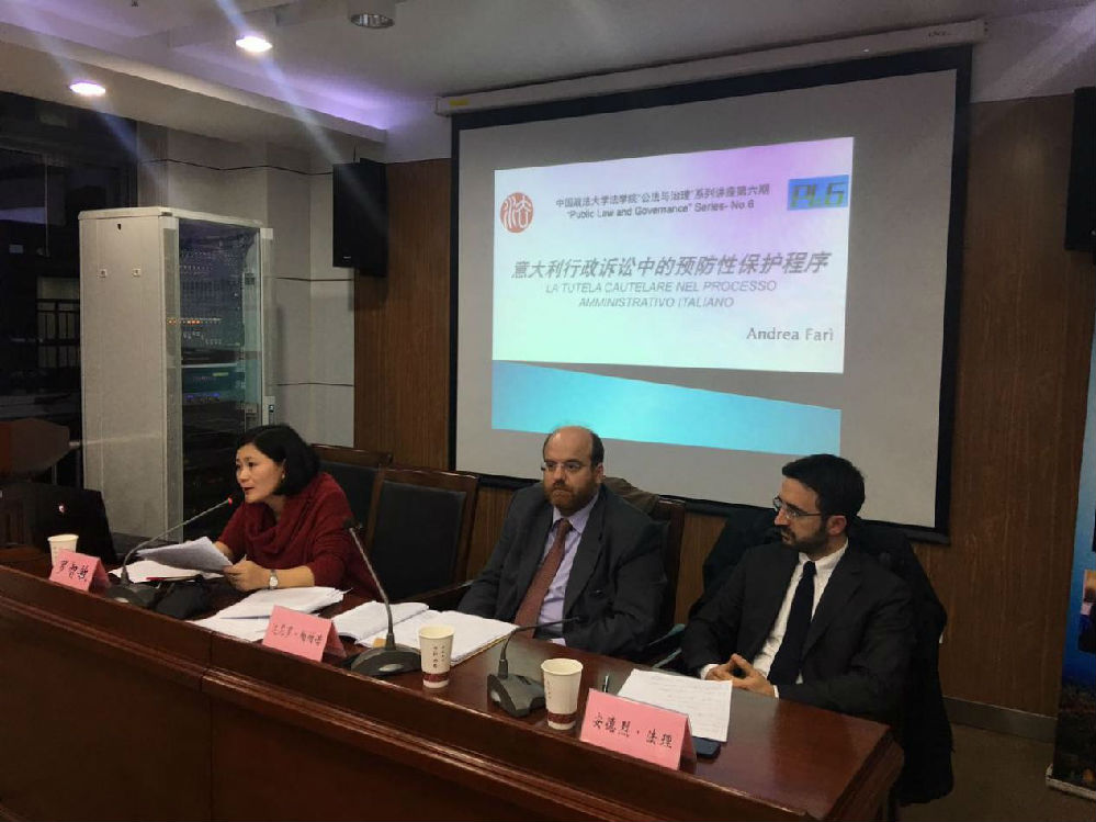 “公法与治理”系列讲座第六期在研究生院科研楼B211成功举办。意大利卡拉布里亚大学、罗马圣马力亚自由大学的达尼罗·帕帕诺(Danilo Pappano)和意大利罗马第三大学、罗马圣马力亚自由大学的安德烈·法理(Andrea Farì)受邀分别进行了主题为“意大利行政诉讼的发展”和“意大利行政诉讼中的预防性保护程序”的讲座。