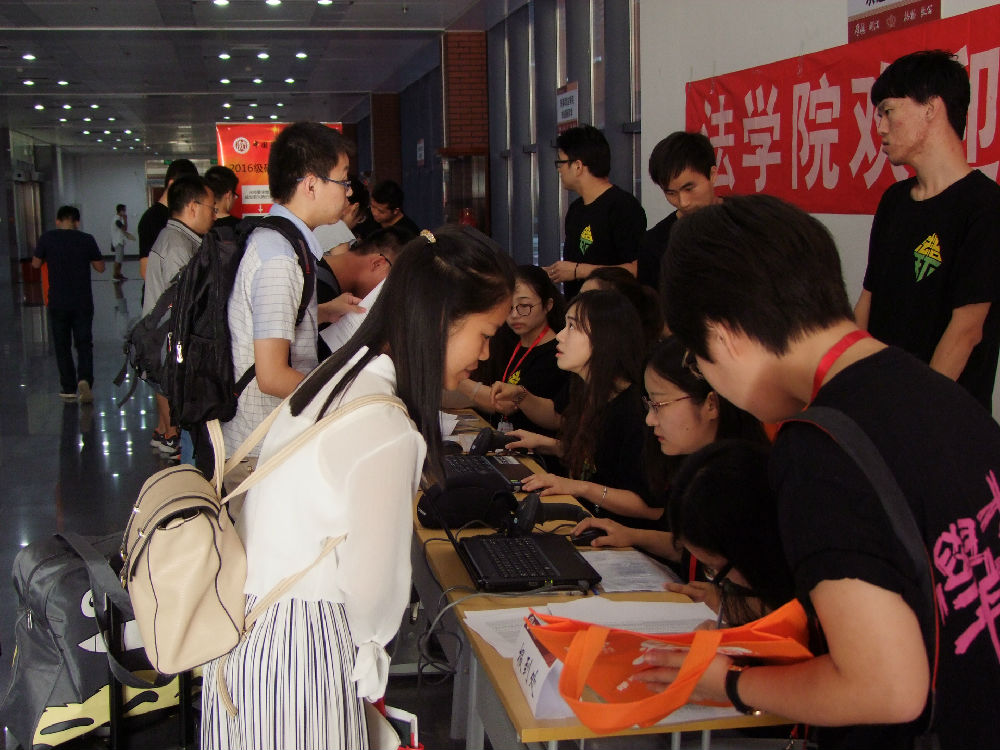 研究生会成员们一张张热情的笑脸,一句句亲切的问候,一项项贴心的服务,欢迎着前来报道的莘莘学子。法学院研工办主任陈维厚,研究生工作办公室王萍、王家启等几位老师亲临现场指导迎新活动。迎新工作如火如荼进行,到处都是忙碌的身影。院研究生会师兄师姐们热情周到的服务成为此次迎新活动最好的明信片。