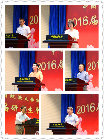 祝贺2016届硕博毕业生以优异的成绩完成了学业。薛刚凌告诫同学们在未来的职业道路上要坚守法律底线,这是法律职业的应有之义,也是对法律人的最低要求;要学会拒绝诱惑,在关涉法律底线的问题上超越亲情界限,提升自己的能力、阅历,学会忍受孤独、以足够的勇气去面对挑战。最后,她希望同学们要守护正义、做真正的法律人,也要平安幸福,把自己塑造的更完满。