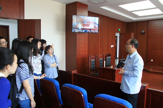 在郭主任和崔主任引导下,师生一行首先参观了北京四中院立案大厅、诉讼服务大厅、立案窗口、法庭、法官办公室等场所。在诉讼服务大厅,郭主任详细介绍了四中院的12368人工语音诉讼服务平台、审判信息网、法院触摸屏等便民方式。通过这些便民方式为人民群众提供了立体式、全方位的诉讼服务。同时也提高了法院的工作效率。随后,参观人员来到四中院的信息控制中心听取了信息处讲解人员对四中院高清数字法庭建设和信息化建设情况的介绍。并观看了四中院建院一周年的工作总结的宣传片,了解四中院建院一年以来在人员管理、案件审理、制度探索等方面所取得的成就,近距离感受到司法体制改革的重要成果。最后,郭主任、崔主任与来访的师生开展了一个座谈会。对四中院是法官遴选、人员分类管理、落实司法责任制、员额制等情况与学生进行了深入的交流,并欢迎来访的学生来四中院实习。