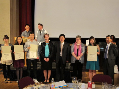 结业仪式--向获得优秀学生证书的同学频发证书