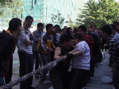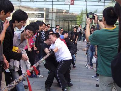 路校区新一号楼前广场举行了2011级新生拔河比赛。