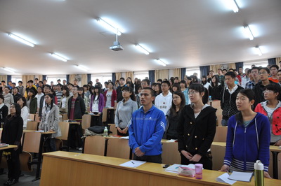 最后,开学典礼在雄壮的国际歌声中圆满落幕,赵卯生老师开始为大家讲授党校第一课:党的性质与宗旨,第44期党校系统培训正式开始。