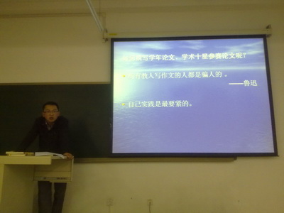 此次活动请来刑事司法学员08级四班的吉冠浩同学为同学们介绍写论文及保研等具体经验。吉冠浩同学是法大“学术十星”的获得者并保研进入北京大学,其优越的成绩和端正的学术态度都被同学们所钦佩。在此次活动中吉冠浩同学与同学们深入交流学术思想,交流热烈活泼,同时也详细解答同学们方方面面的问题,为处于大三关键时期的同学们答疑解惑,对同学们的发展做了积极的建议并勉励与会同学发奋学习,努力拼搏,为自己的未来做好准备。