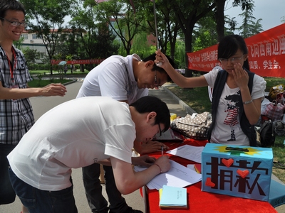 08级联合党支部联合主办的“Wing The Future毕业捐赠”活动在2012年5月25日于法大旧书摊一条街爱心来袭。