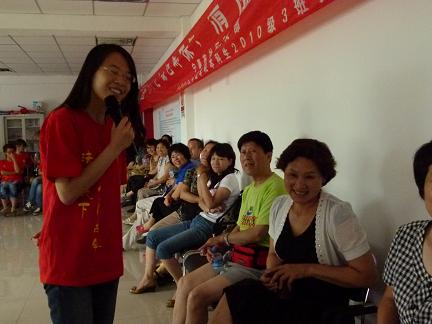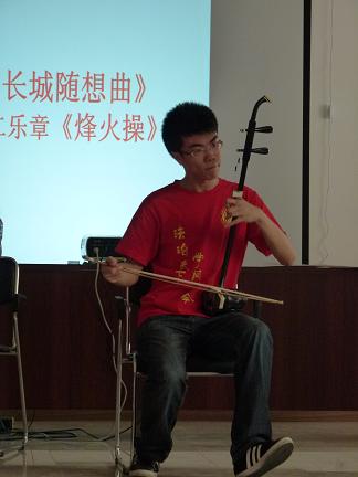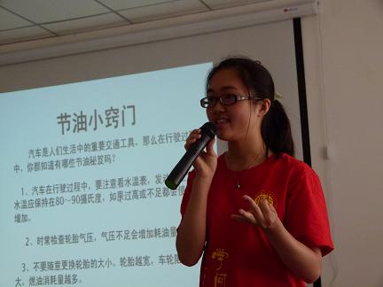 当日下午,宁馨苑社区党支部的负责同志们热情接待了我们29名学生党员、预备党员和入党积极分子,引领我们29名学生和社区的20多名党员同志来到宽敞明亮的社区活动会议室。下午两点半,活动正式开始,首先是社区六位阿姨们以优美的舞蹈作为开场节目,拉开了本次座谈活动的帷幕。接下来,由3班的四位同学依次就节能环保小窍门、废物巧利用、社区健康生活、知识竞答四个部分展开了一个半小时的宣讲,其间还和与会学生、社区党支部党员互动、讨论,气氛非常活跃。最后由3班的一位同学以一首二胡演奏曲《长城随想曲第二乐章——烽火操》为本次活动画上了圆满的句号。