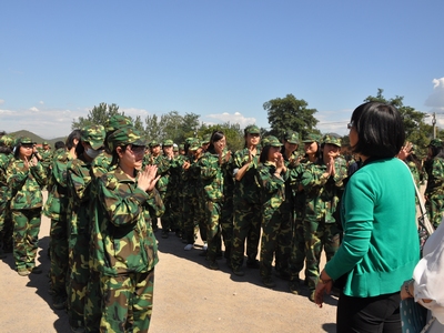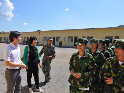 学生会成员来到八达岭学生军训基地,看望在此军训的2012级新生。
