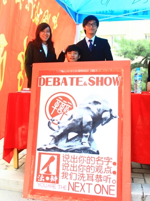 辩论队所有成员身着正装,佩戴工作证,积极地投身到学校的“百团大战”当中。在热闹的宪法大道上,各位部长将提前准备好的传单分发给皇冠体育博彩网址