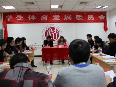 五届一任学生体育发展委员会第二次全体委员会议在学生活动中心107室如期举行。主持人由体育发展委员会主任委员冯亮担任,与会嘉宾有体委会副秘书长杨婷婷、体委会副主任委员郑潇、体委会副主任委员杨杰。