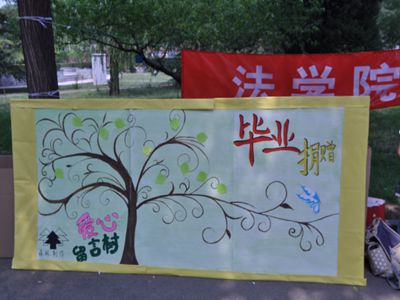 每一位捐赠人带着一份爱心,捐赠出包括书籍、衣物、日常用品(如被褥、蚊帐等)、玩具等物品,捐赠人在捐赠出物品之后还在宣传板上留下了“祝所有人幸福”、“好好学习”、“加油,宝贝们”的爱心感言,在校园里传递了一份属于毕业生、属于法大学生的正能量。