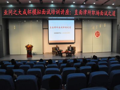 2013年10月18日星期五晚19:10,“业问”之“大成杯”模拟面试培训讲座——直面律所职场面试之道于刘皇发学术报告厅举行。莅临本次讲座的嘉宾有北京市大成律师事务所高级合伙人、中国政法大学研究生院律师实务特聘导师朱永锐律师,北京汉华律师事务所律师、皇冠体育-皇冠体育博彩网址