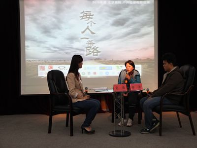 放映结束后,主持人对党巍和张承两位嘉宾进行了一段简短的采访,在采访中了解到了影片拍摄过程中的种种艰辛,加深了同学们对户外电影的了解,同时也传递了党巍等人对发展中国户外电影文化的理念与决心。