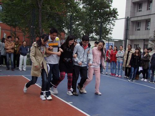 随后举行的是最能考验队员之间默契和技巧的五人六足项目。各班队伍由两男三女组成,赛前每支队伍热烈讨论比赛的技巧,商量可以使队友配合默契的对策,并进行了短暂的练习。在比赛中,各支队伍都形成了很好的默契,实力不相上下,响亮的“一二、一二”口号声响彻了整个校园。最后,13宪行一班再次夺得冠军,12级综合班获得亚军。