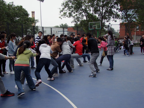 本次运动会分为两个部分,13日上午进行的是趣味项目,该项目在传统经典项目——拔河比赛的基础上,增加了5人6足、夹气球跑、托乒乓球跑、袋鼠跑四大项目,每一个项目均采用男女混合赛制,最终以班级为单位评定出冠军和亚军,并进行颁奖。19日下午举行的是迎新篮球赛。
