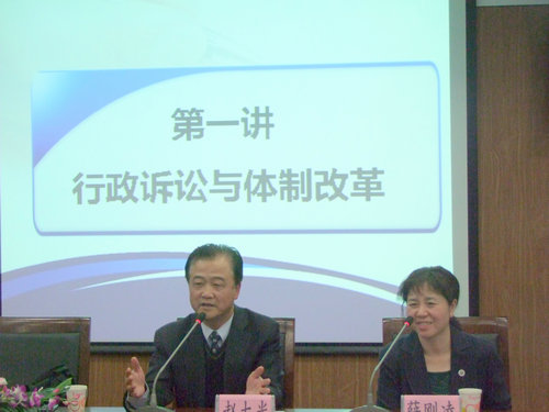 赵大光主讲的内容主要分为两大部分,一是行政讼诉的概况;二是行政诉讼的司法体制改革。针对第一部分,他讲到以下几点:第一,我国行政诉讼起步晚。世界范围内的行政诉讼已有二百多年的历史,而我国的行政诉讼实施至今仅有二十多年;第二,我国行政诉讼起点高。由于我国在行政立法时,参照别国的经验,借鉴吸收了欧美国家的立法成果,所以,尽管我国现行《行政诉讼法》仅有七十多条法律条文,但其中的规则、理念不落后于、甚至高于世界上的某些国家;第三,我国行政诉讼发展快。《行政诉讼法》颁布实施之后,法院受理的行政诉讼案件大量增加,至今已有170多万件,每年平均有12-13万件;第四、我国《行政诉讼法》实施后效果好。这首先体现在行政诉讼法的实施带动了相关法律法规的制定,例如《国家赔偿法》、《行政强制法》等,其次行政工作人员的工作规范与法治意识也有了显著的提高。