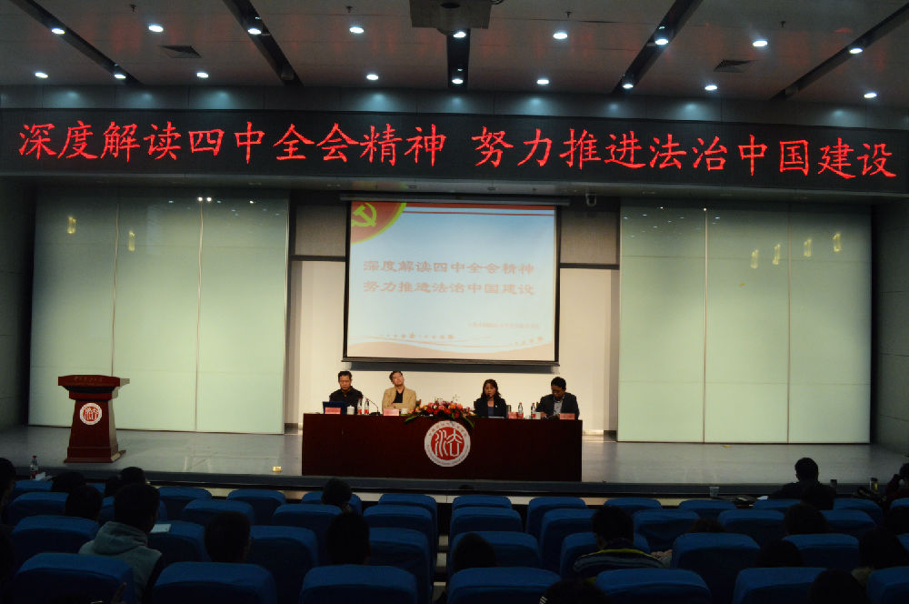 分党委在昌平校区逸夫楼刘皇发报告厅举行了以“深度解读四中全会精神,努力推进法治中国建设”为主题的专题报告会。皇冠体育博彩网址