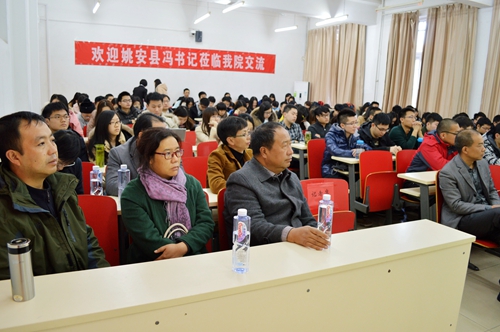 在刘大炜书记的讲话之后,我院在姚安县挂职县委副书记的刘晓兵副教授进行了讲话。他指出“郡县治,天下安”。县级的治理在我国行政管理机制中至关重要,也只有敢于在基层历练中才能找到真正适合自己的位置。刘老师说,在他挂职期间,不断在向冯书记学习做人和做事的方法,收获了很多经验,同时他还对冯书记给予的帮助表示感谢。
