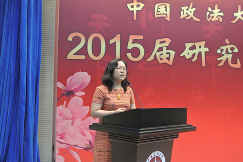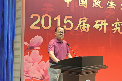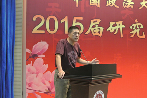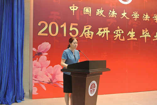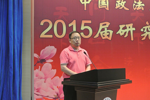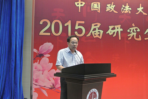 首先祝贺2015届毕业生顺利毕业。为什么大学时光总是让人难以忘怀,原因之一,就是它总是与我们一生中最美好的年华联系在一起。但更重要的原因是,我们大多数人都不可能再经历这样一个最纯粹的时光。而我们在座的各位有着更多共同的经历,比如在传说是被炸过的学校上课、最拥挤的食堂、简陋的设备,尤其是没有空调的宿舍等等。还有就是一些奢靡的经历,与知名法学家的对话,包括徜徉在书的海洋,与罗尔斯、密尔等大家对话等等。那些公平自由理念是我们共同的记忆。在这样一个局促的环境下,我们的母校给予了我们这些有点奢靡、可以说是自由无用的灵魂。但这是我们法大人共同的标签,希望我们永远拥有这自由而无用的灵魂。虽然无用,但并不孤独;虽然无用,但很自由。最后,祝大家一路顺风!