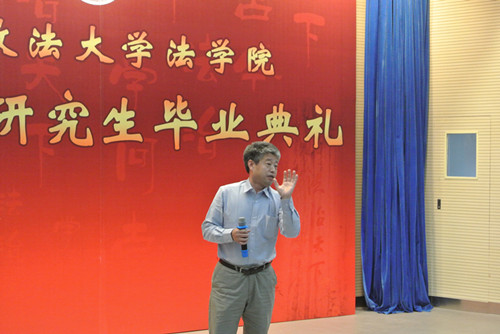 今年正好是本人大学毕业33年,在这里我想向大家表达三层祝愿。第一,青春是用来感恩的。在座的研究生在法大能够顺利毕业,确实要感谢学校、领导、老师、父母和朝夕相处的同学们。正是有了这三年,使得大家能够建立很好的人际关系,有了很好的成家立业的平台以及美好的未来。第二,青春是用来奋斗的。我们所处的时代应当是改革开放以来党中央和国家最重视法治建设的最好的时代。尽管我们也看到不尽如人意的地方,但是社会总在发展进步。作为法大的学生,无论将来从事什么职业,还是需要继续奋斗。第三,青春是用来纪念的。三年很短,韶华难留。希望同学们能够珍惜在法大的岁月,珍惜我们的过去,也珍惜我们的未来。最后祝同学们前程远大,家庭幸福,事业有成。
