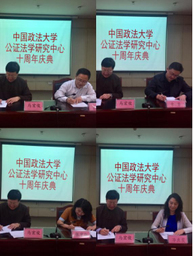 对各位远道而来的公证同仁的热烈欢迎和对中心十周年庆典的祝贺。中国公证协会副会长、北京市公证协会会长、北京市长安公证处主任周志扬也代表北京市公证协会向中心表达了诚挚的祝福和感谢,感谢中心这些年来为公证行业所付出的努力和所做的贡献。中国政法大学公证法学研究中心主任马宏俊教授对中心这十年的历程做了一个总体的阐述,虽然有坎坷、有迷茫,但中心矢志不渝地与公证同行并肩作战的决心从未改变,十年如一日、执着于公证、砥砺向前行!