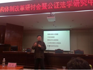 短暂茶歇后,马宏俊教授做了题为“公证机构的演变及发展规律”的演讲,他把事业体制、行政体制和合作制做了对比、公证与律师做了比较、合作制与私人执业的比较,借鉴台湾民间公证人改革的经验,分析了体制改革的必然趋势。他同时提出了合作制试点存在的问题:多种体制并存带来的不正当竞争、合作人与发起人的异同、公证处内部管理体制的矛盾、按劳分配与按资分配、执业的独立性问题等等。他还从更广阔的视野引导出司法改革对公证改革的启示,分析了员额制的确立、审者裁判有权有责终身追究的理念、独立行使审判权的制度保障、司法辅助功能的确立、法官地位的提升和经济保障等各个方面。马教授更前瞻性地提出:公证员是履行公证职能的主体、公证机构是职业平台、、公证员是自由职业者、公证员执业只服从法律受法律保护、公证机构不应该承担保证和管理责任。马教授短短两个小时的演讲,让在座的公证同仁深受启发、受益匪浅。