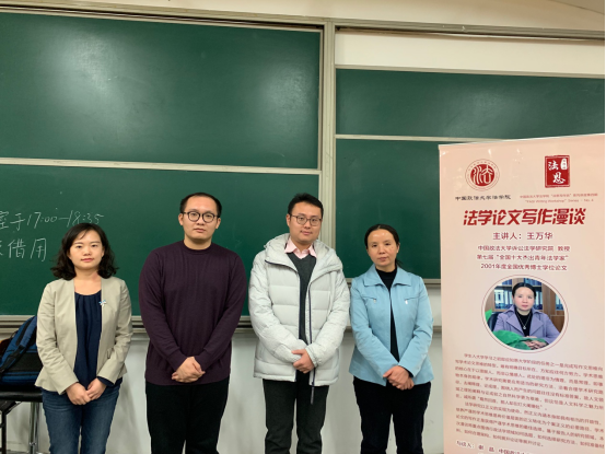 之后,主讲人王万华教授结合了自己多年来指导硕士、博士论文过程中的总结和思考,全方位地为大家提供了操作性强、具有指导意义的写作经验。王万华教授从《人间词话》中人间三境界出发,对论文写作进行了三层次的剖析,告诉大家写作时要怀有提升自我、学术创新的心态,去熟悉学科的基本理论体系,从而掌握正确的研究方法,直到完成从写“作文”到写“论文”的转变。除此之外,王老师还诫勉同学们,论文写作需要坚持法律职业的操守,遵守学术规范,杜绝抄袭,做有道德的法律人。最后,王老师祝愿同学们能从法学论文写作中完成塑造自我学术能力的过程,并享受到论文写作的乐趣。