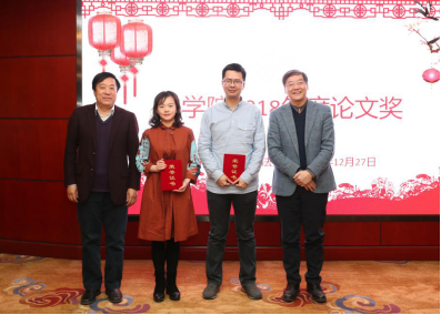 2018年度优秀论文奖获得者颁奖。冯世勇、焦洪昌为皇冠体育博彩网址