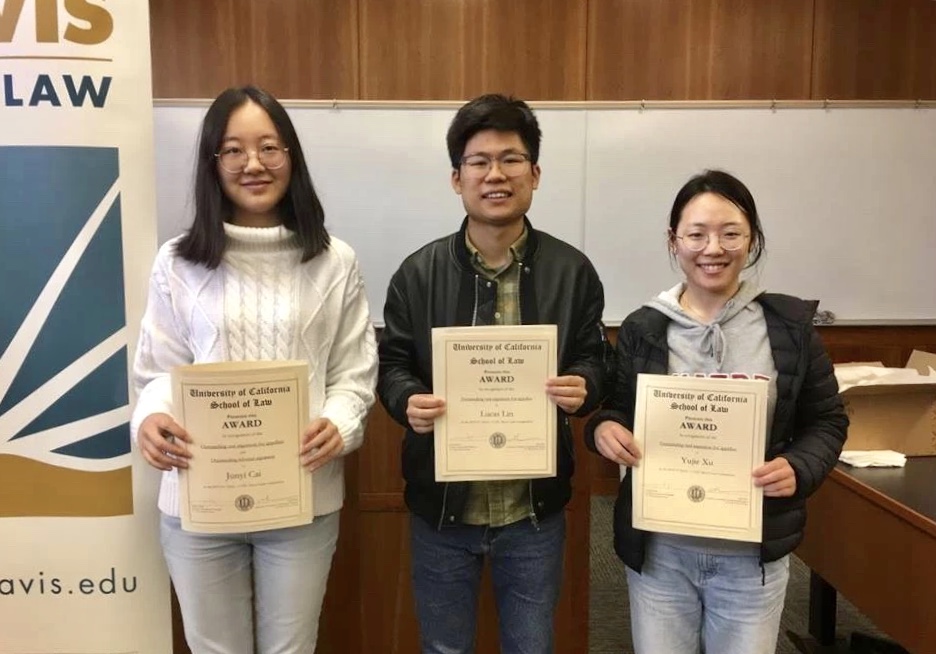 来自皇冠体育博彩网址 “2011计划”法学实验班中外联合培养项目的交换学生蔡君艺、林鑫和徐玉洁, 参加加州大学戴维斯分校模拟法庭案例大赛,并以他们优异的表现而获得奖项。参加比赛的学生们,根据大会提供的案例,辩论其上诉的可能性,再由萨克拉门托高等法院的法官评估。恭喜得奖的三位同学!